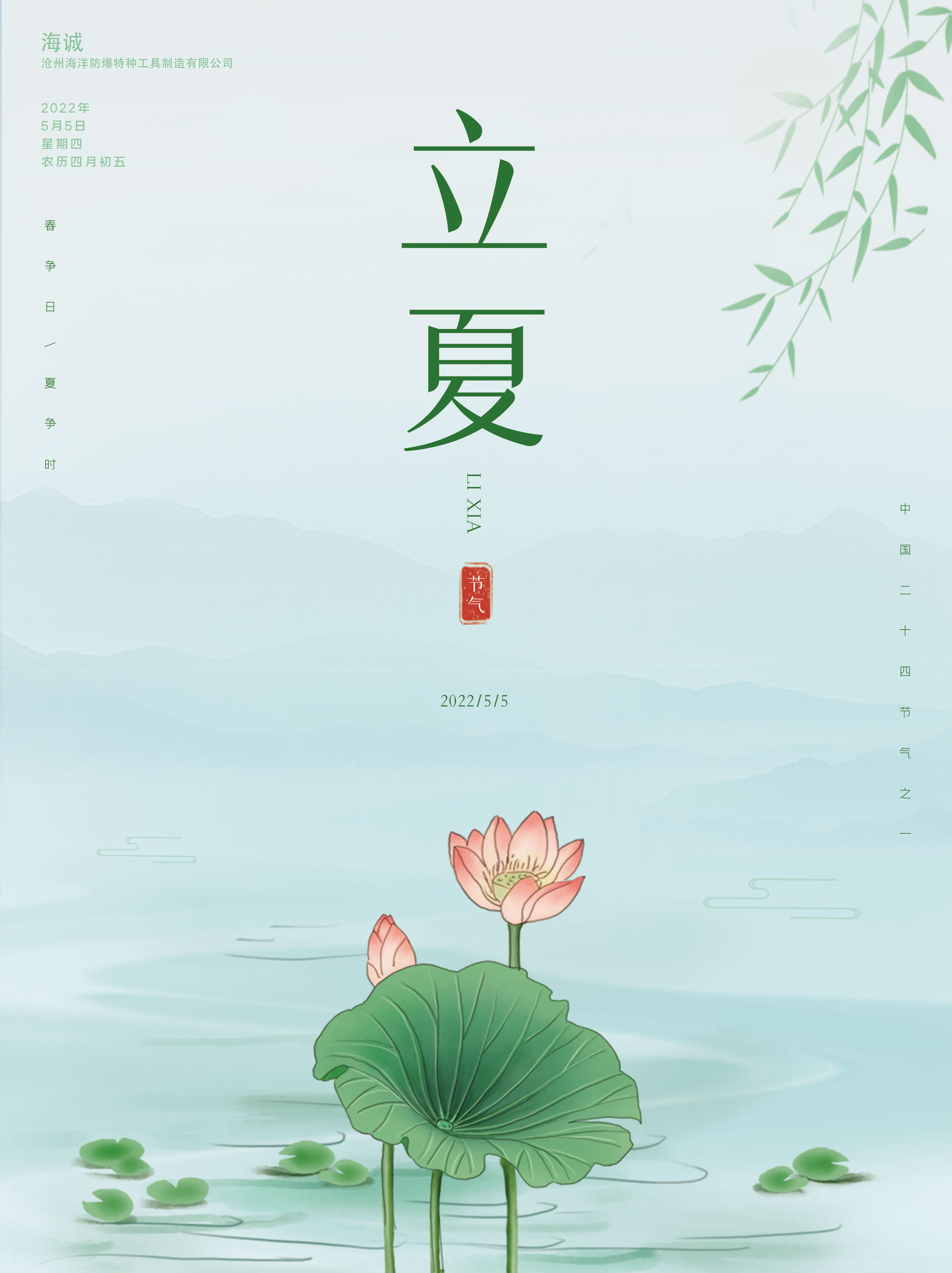 立夏表示告別春天,是夏天的開始。春生、夏長、秋收、冬藏,時(shí)至立夏,萬物繁茂。由于我國幅員遼闊、南北跨度大,各地自然節(jié)律不一。立夏時(shí)節(jié),我國只有福州到南嶺一線以南地區(qū)進(jìn)入"綠樹濃陰夏日長,樓臺倒影入池塘"真正意義上的夏季;而東北和西北的部分地區(qū)這時(shí)則剛剛有春天的氣息。若按我國現(xiàn)代氣候?qū)W(候平均氣溫)的劃分標(biāo)準(zhǔn),日平均氣溫穩(wěn)定升達(dá)22℃以上為夏季開始。