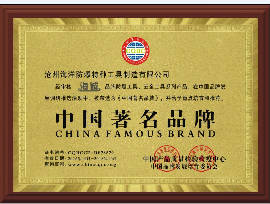 “海誠(chéng)”商標(biāo)榮獲中品,標(biāo)志著我公司生產(chǎn)的設(shè)備和技術(shù)達(dá)到水平,產(chǎn)品質(zhì)量得到了廣大客戶的喜愛與推廣。我公司(海洋防爆工具)將不忘初心,始終站在時(shí)代前言,用海洋人的勤勞和智慧譜寫著海洋輝煌的明天。