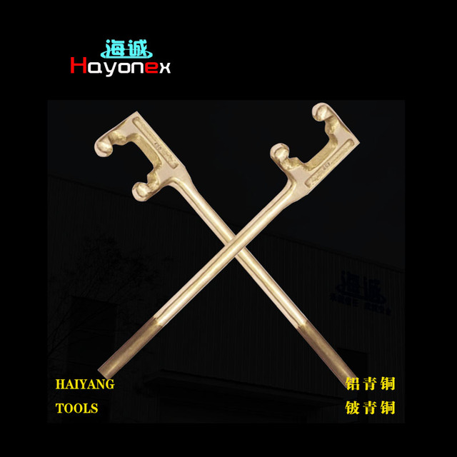 防爆防滑F(xiàn)型扳手的常用的尺寸為300-800mm。這種扳手頭部圓弧形設(shè)計(jì),和閥門接觸面大,不易滑脫,柄部扎花,不打滑。其材質(zhì)分為鋁青銅和鈹青銅兩種材質(zhì)。表面處理的顏色是原銅色。它是在石油,化工等易燃易爆場所使用。