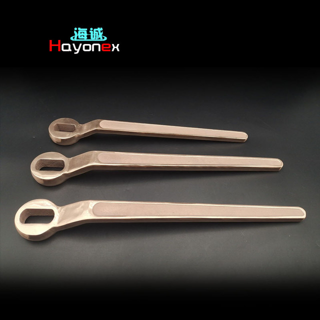 防爆橢圓閥門扳手,它的常用的尺寸為18*12mm、20*14mm、22*15mm、24*16mm和28*18mm。這種扳手主要用于開啟和關(guān)閉橢圓閥門。其材質(zhì)分為鋁青銅和鈹青銅兩種材質(zhì)。表面處理的顏色是原銅色。具有結(jié)構(gòu)穩(wěn)定、材質(zhì)密度高、抗打擊能力強、經(jīng)久耐用的特點。這款扳手是設(shè)備安裝、調(diào)試、維修和檢修工作必用的工具。適用于石油,化工等易燃易爆場所。