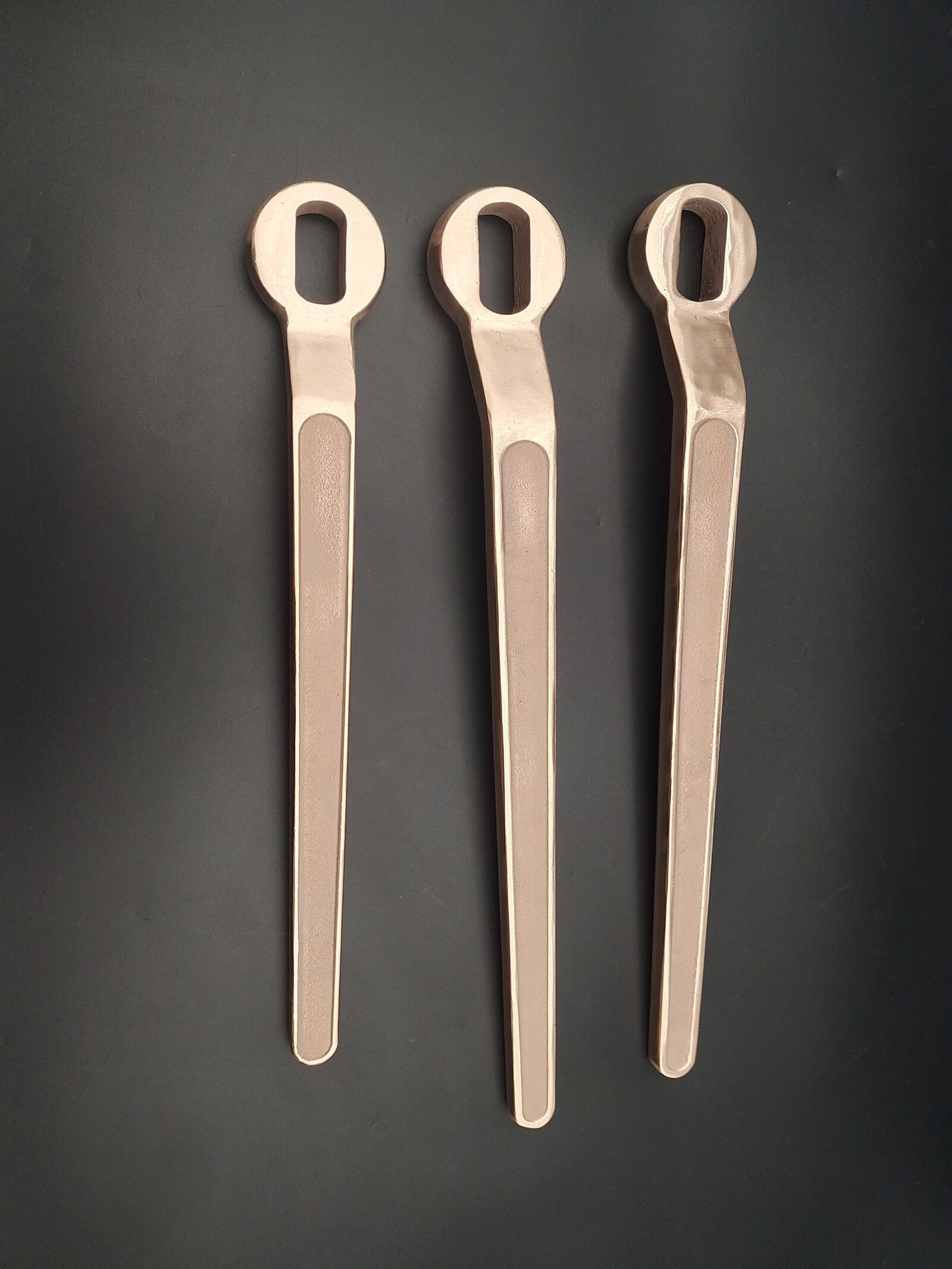 防爆球閥扳手:一頭為橢圓型扳手一頭為單頭手柄,橢圓端為擰閥門端,另一端單頭為手持扳力處。防爆球閥扳手材質(zhì):鋁青銅合金、鈹青銅合金,防爆球閥扳手規(guī)格有:DN15-DN25-DN30-DN40-DN50-DN65-DN80-DN100-DN125-DN150-DN200防爆球閥扳手:可廣泛應(yīng)用于石油、石化、油站、油庫、采氣、化工、軍工、電力、礦山、電子、鐵路、等潛在火患和爆炸的危險(xiǎn)環(huán)境中。防爆球閥扳手經(jīng)過加工處理后的鈹青銅產(chǎn)品的抗拉強(qiáng)度可以達(dá)到35度以上,鋁青銅產(chǎn)品的抗拉強(qiáng)度可以達(dá)到25度,鈹青銅產(chǎn)品能防磁,所以這種產(chǎn)品又是既防爆又防磁的產(chǎn)品,特別適合于在要求更高的工作場所使用。