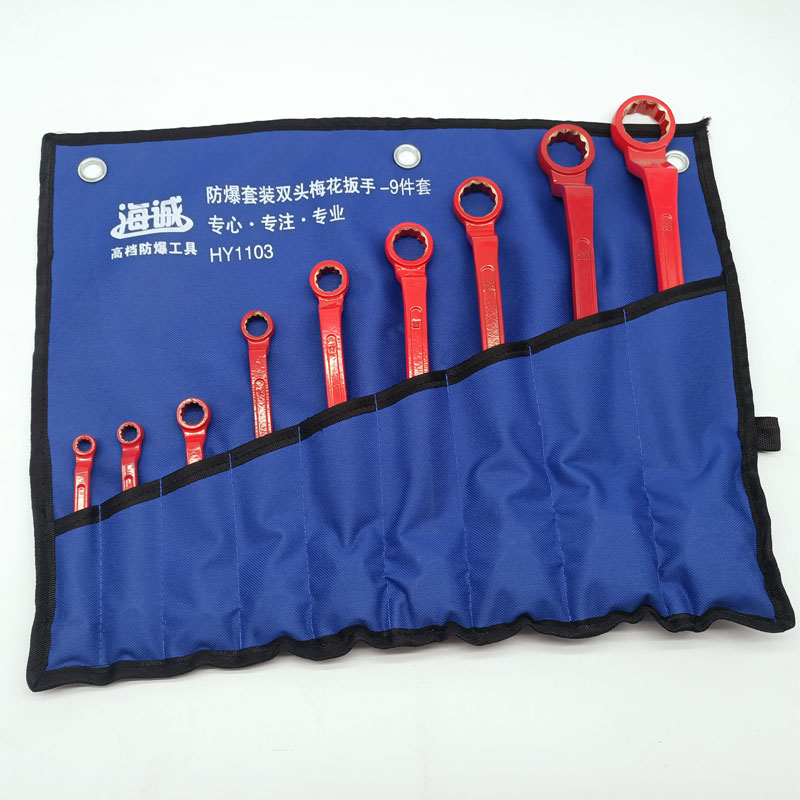 防爆套裝雙頭梅花扳手:防爆資質(zhì)齊全 正規(guī)發(fā)票 防爆等級:EXIIB EXIIC 規(guī)格:5件套 6件套 8件套 9件套 10件套 11件套13件套 (可根據(jù)要求組合件套)