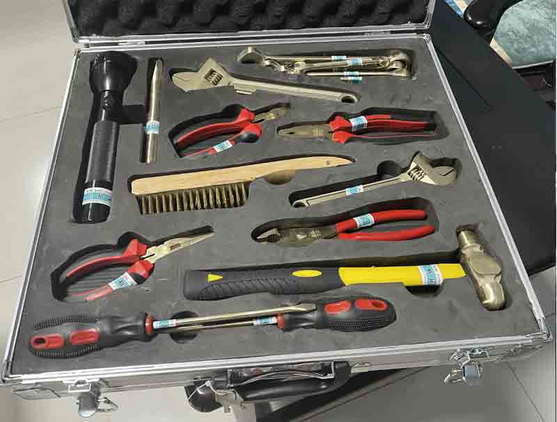 防爆組合工具采用高強度銅基合金材料制造,硬度高、韌性好,防爆性能符合標(biāo)準(zhǔn),產(chǎn)品廣泛適用于石油、石化、煉油、油庫、加油站、化工、礦山、煤炭、制氧、制藥、冶煉、火藥、皮革、塑料等行業(yè),是安全生產(chǎn)必備的工具