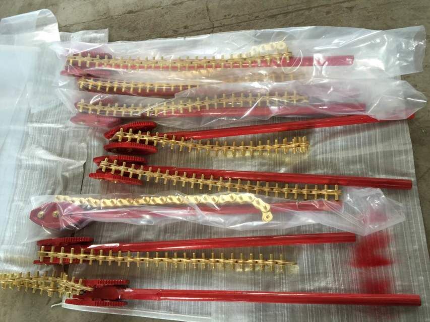 防爆工具、 防爆管鉗在使用過程中和機(jī)械摩擦或撞擊時(shí),短時(shí)間內(nèi)產(chǎn)生的熱量能被吸收及傳導(dǎo),由于銅本身相對(duì)比較軟,摩擦和撞擊時(shí)能有很好的退讓性,不易產(chǎn)生微小金屬顆粒,于是我們幾乎看不到火花。因此 防爆管鉗適用于在各種易爆、易燃、強(qiáng)磁及腐蝕性環(huán)境中作業(yè),不會(huì)產(chǎn)生火花、不引爆氣體。防爆管鉗主要適用范圍是:石油精煉和石油化學(xué)工業(yè)、煤礦、油田、天然氣化學(xué)工業(yè)、火藥工業(yè)、化纖工業(yè)、油漆工業(yè)、肥料工業(yè)、各種藥品工業(yè)。石油輪和液化石油氣的車輛、飛機(jī)、經(jīng)營(yíng)易燃易爆品的倉(cāng)庫(kù)、電解車間、通訊機(jī)裝配車間、要求工具不生銹、耐磨抗磁的場(chǎng)所等。防爆管鉗規(guī)格:8寸、10寸、12寸、14寸、18寸、24寸、36寸、48寸